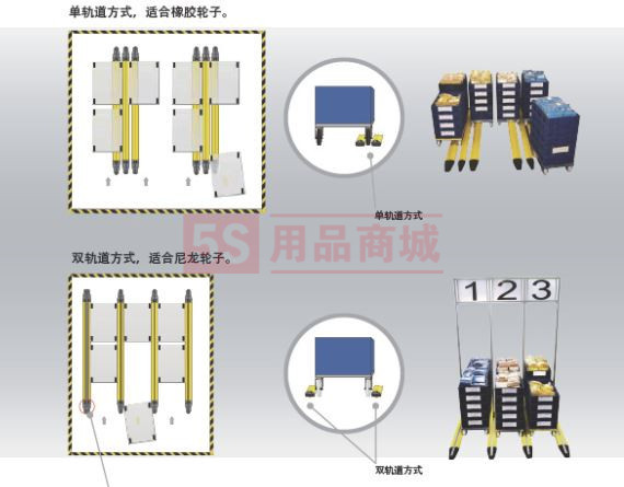 先進先出堆放站規(guī)定了運輸小車先進先出的順序,使進出的小車完全按照順序擺放,整齊美觀,一目了然,這些用品可以幫助你有效實施精益生產(chǎn)管理。